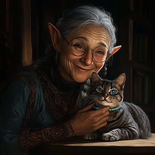 Sylwen and her beloved mischief-maker, Moonwinkle