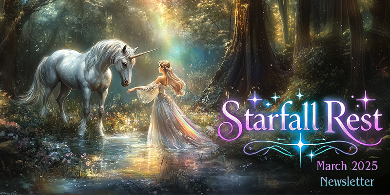 As for our beloved Starfall Rest in the month of March, I am wrapping up the Chapter 6 audioplay, and it should be released very soon. As I step fully into content creation, I’m searching for a routine that is both productive and sustainable. Hopefully, I will find that rhythm soon because there is nothing I want more than to deliver Starfall Rest magic to you.