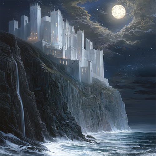 The Moon Citadel rises above the Endless Deep, overlooking the rugged Thunderholme Fjords where the Sylvercurrent meets the sea. Its alabaster walls shine like a beacon of tranquility, defying the stormy skies and restless waves. It serves as both a temple and a school. Young witches who show potential often journey to the Citadel to train, learning not only magic but also healing, herbcraft, and diplomacy. After completing their training, witches can choose to remain at the Citadel, accept assignments as emissaries or healers, or return to their communities as trained practitioners.